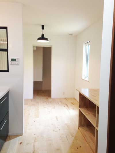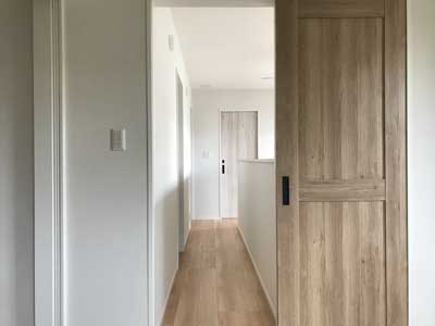 施工事例-長期優良住宅+ZEH ZEH+長期優良住宅 2025.09.22 自然と共に暮らす木造二階建ての心地よい住まい-松江市仕様:長期優良住宅+ZEH外壁:サイディング屋根:ガルバリウム鋼板 2階廊下 キッチン ホール 子供部屋 食品庫 洗面所 リビング